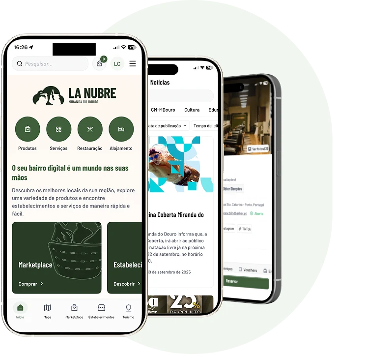 Explora os serviços locais, compra os produtos que precisas, faz a reserva no teu restaurante favorito e desfruta de uma estadia relaxante no alojamento da tua escolha. Tudo num só lugar, ao teu alcance!
