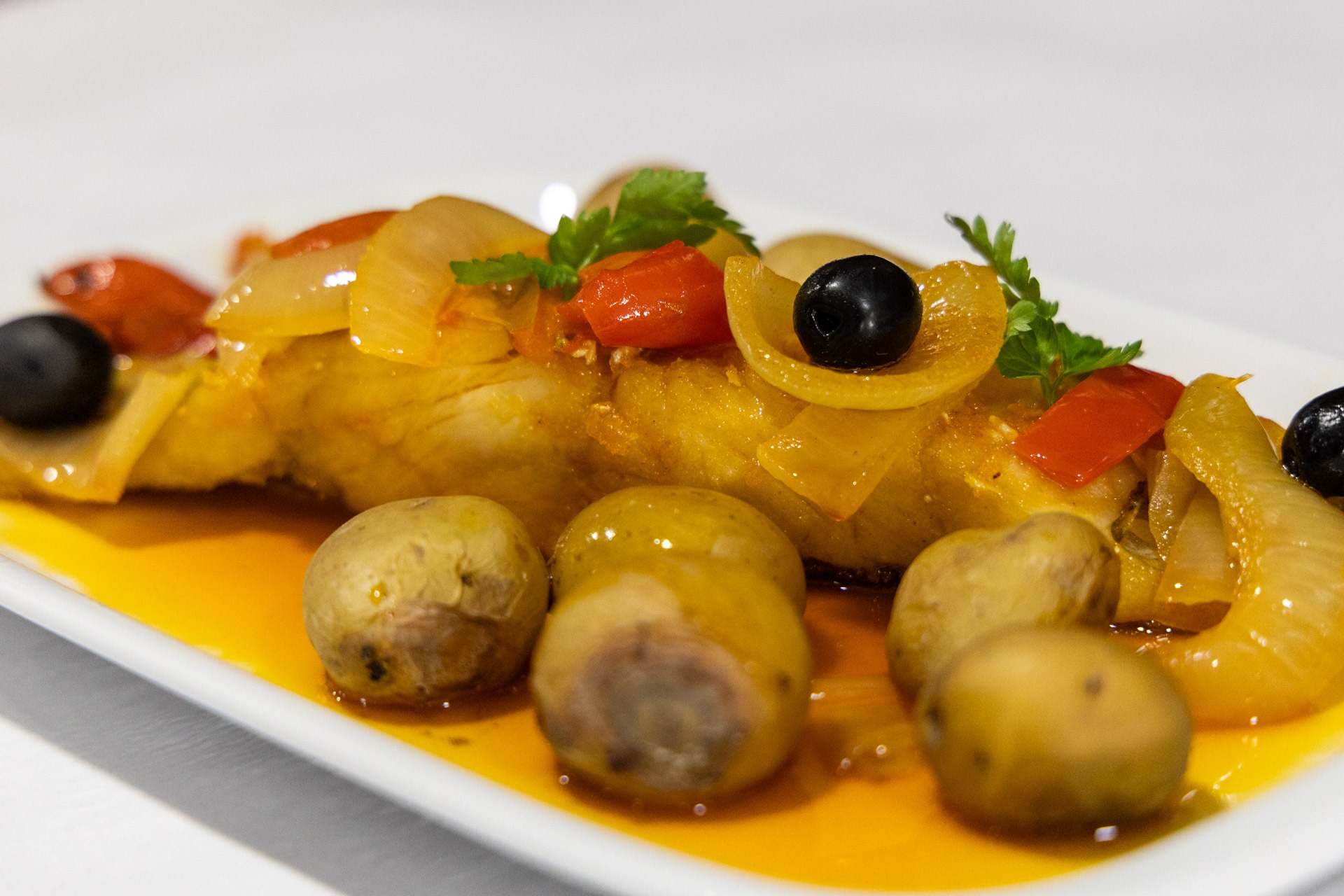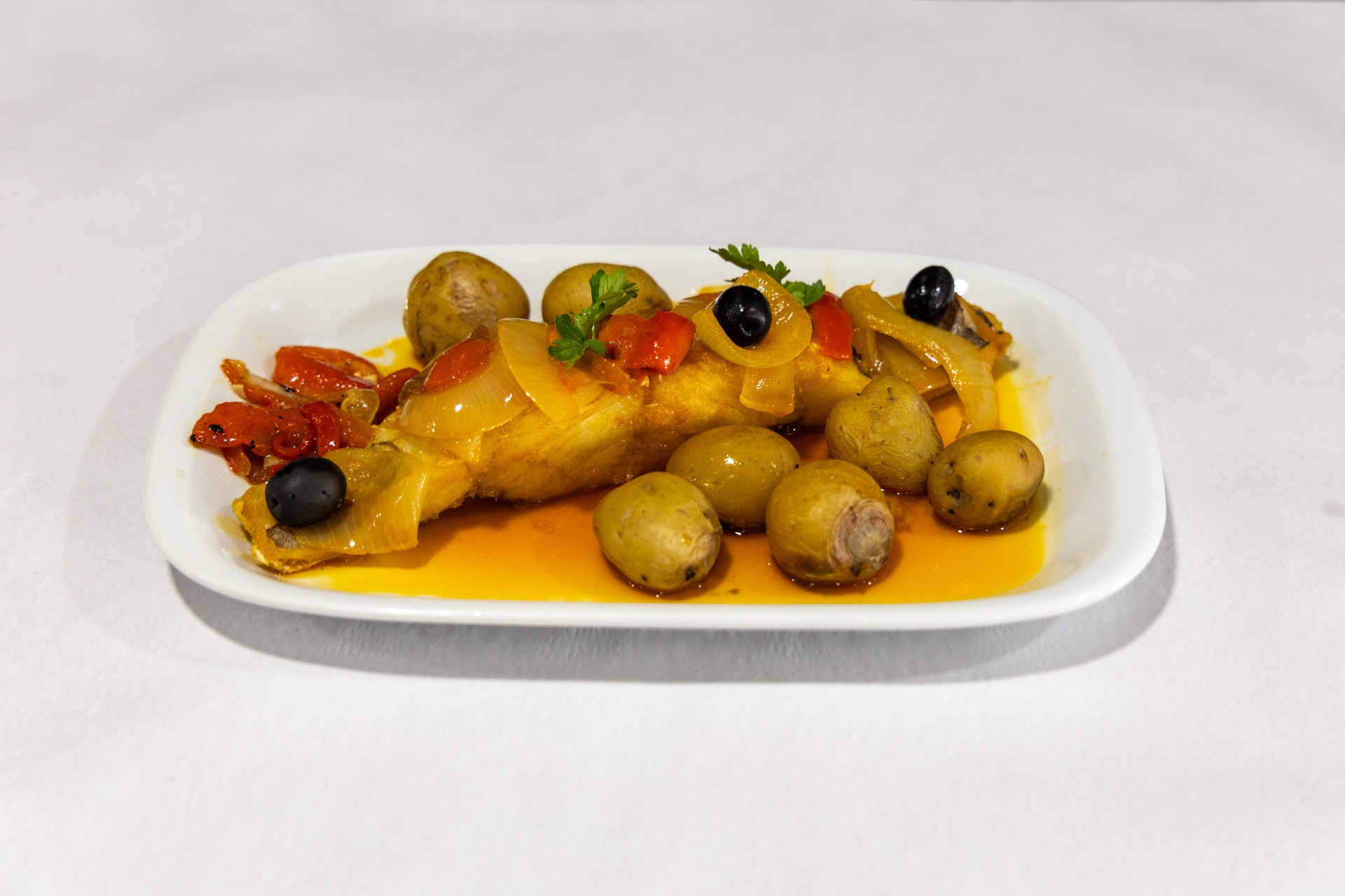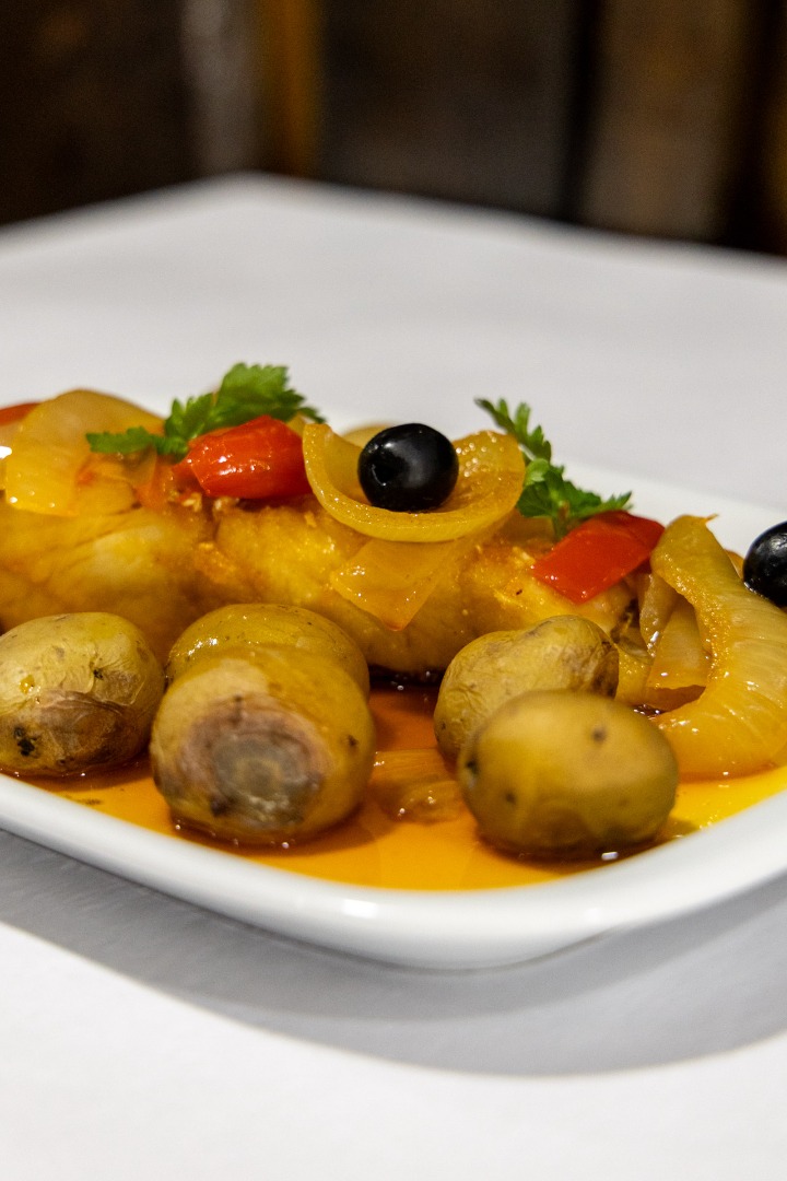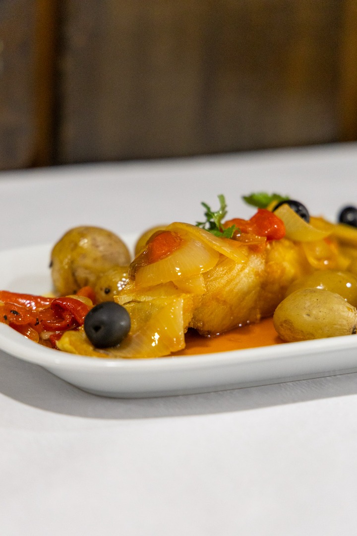 Tradicional “Bacalhau à Moinho”, uma especialidade do restaurante O Moinho, em Miranda do Douro, preparada com os sabores autênticos.